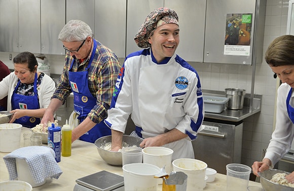 Originaire de San Pellegrino, le maître pizzaiolo Giuseppe Cortinovis est venu partager ses secrets pour la préparation d’une pâte à pizza à la fois aérienne, élastique et croustillante. Une formation de deux jours était destinée aux professionnels, alors que le grand public était invité à participer à un Atelier SAQ par ITHQ « Pizza et vino » de trois heures.