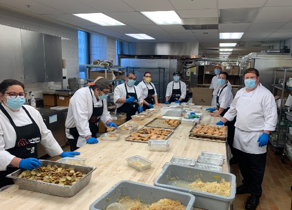 La reprise des cours n’empêche nullement notre équipe de la restauration de continuer à appuyer l’initiative de La Tablée des chefs, qui vise à remettre un total de 1 600 000 repas aux Banques alimentaires du Québec. À l’ITHQ, c’est plus de 26 000 portions qui ont été préparées depuis le début du confinement. Comme le dit Jonathan Lapierre, directeur de la restauration : « Tant que ça va bien et qu’on peut aider, on va continuer! »
