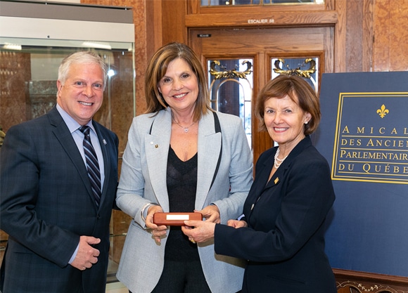 L’honorable Liza Frulla, C.P., C.M., O.Q., a reçu, le 7 mai dernier, la Médaille de l’Assemblée nationale des mains du député et président de l’Assemblée, François Paradis. Cette médaille est remise par les députés de l’Assemblée en guise de reconnaissance à des personnes de leur choix. Félicitations à notre directrice générale!