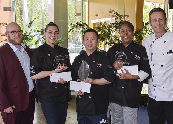 Nos diplômés en cuisine Vincent Baronnat et Camilo Lapointe-Nascimento (tous deux du restaurant Le Mousso) ont respectivement remporté la 1re et la 2e place lors de la finale régionale de la Hawksworth Young Chef Scholarship, le 23 mai dernier à l’ITHQ.