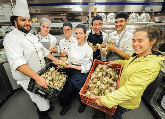 C’était la première année que le Restaurant de l’ITHQ participait à l’opération Gardiens de semences, une initiative qui unit les semenciers, les maraîchers et les chefs afin de sauver des semences oubliées, rares ou menacées. L’équipe du Restaurant de l’ITHQ est devenue l’heureuse marraine de 50 kg de betteraves blanches Albina Vereduna, une semence multipliée par la Société des plantes de Kamouraska et cultivée par les étudiants en agriculture du Cégep de Victoriaville.