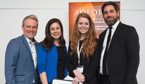 Camille Lavallée (hôtellerie), Luc-Antoine Cauchon (cuisine), Minh Doan (service et sommellerie) et Julie-Anne Perrault (tourisme) ont été choisis par l’Association québécoise de la formation en restauration, tourisme et hôtellerie (AQFORTH) pour recevoir un Grand prix de la relève. Étudiante du baccalauréat en Gestion du tourisme et de l’hôtellerie ITHQ-ESG UQAM, Julie-Anne a reçu le Grand Prix de l’Excellence pour son implication auprès de l’organisme Kéroul, avec qui elle souhaite développer le tourisme accessible pour les gens qui vivent avec un handicap.