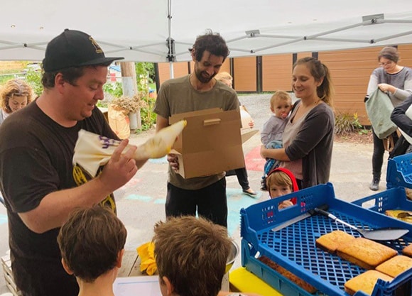 Le mercredi soir, je monte un petit chapiteau dans ma ruelle, près du théâtre Aux Écuries, dans Villeray. On installe notre table et les gens se servent. La Boulangerie de ruelle, c’est aussi nourrir notre communauté, nos voisins. On a de belles petites familles dans le coin. On ouvre le kiosque, les gens viennent et jasent entre eux, comme sur le parvis de l’église. C’est convivial et agréable!
