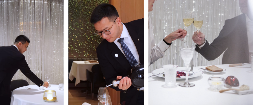 D’ailleurs, Michel nous explique que ce qui distingue un service dans un étoilé Michelin, c’est la préparation et l’attention portée aux détails. « Quatre employés travaillent quasi à temps plein à faire des recherches sur chacun des clients. Avant que ces derniers arrivent, on fait une rencontre préparatoire pour vraiment savoir qui ils sont, en apprendre plus sur leur vie, leur famille, leurs habitudes, leurs préférences. On peut ainsi leur offrir une expérience ultra personnalisée. »