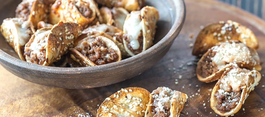 - Faire chauffer les minitortillas dans une poêle, 30 secondes de chaque côté.