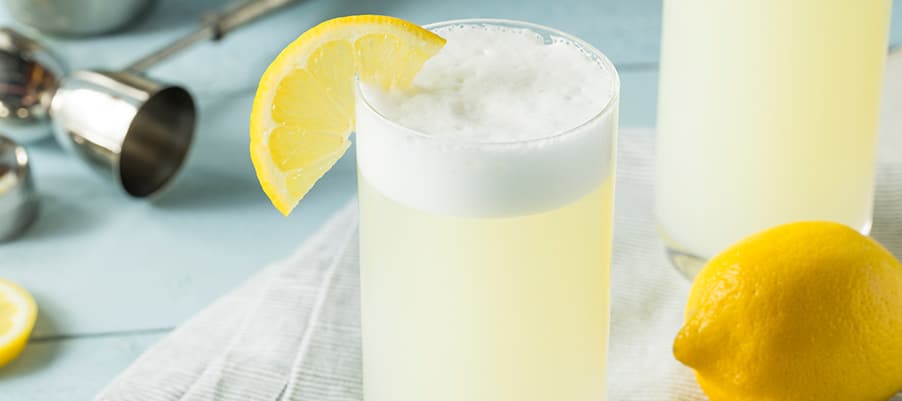 3. Mélanger (shaker) dans un coquetier tous les ingrédients et verser dans un verre à gin (highball) ou tout autre grand verre.