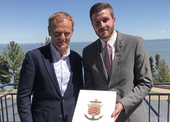 J’ai plusieurs anecdotes, mais je ne peux briser le lien de confidentialité qui vient avec le sommet du G7! Mais voici un moment qui m’a vraiment marqué : le 8 juin 2018, à 9 h du matin, je venais tout juste d’arriver dans le lobby de l’hôtel. Angela Merkel, la chancelière d’Allemagne, était devant moi avec Theresa May, alors première ministre du Royaume-Uni. De l’autre côté, Jean-Claude Juncker, le président de la Commission européenne, Donald Tusk, le président du Conseil européen, et Shinzo Abe, le premier ministre japonais, étaient en train de rigoler. Le premier ministre italien, Giuseppe Conte, et le président français, Emmanuel Macron, prenaient des photos dans le lobby. Puis, je me suis retrouvé face à face avec notre premier ministre, Justin Trudeau. En seulement 3 minutes, j’ai réalisé toute l’ampleur de cet événement, mais j’ai aussi compris que les grands dirigeants étaient des personnes comme vous et moi.