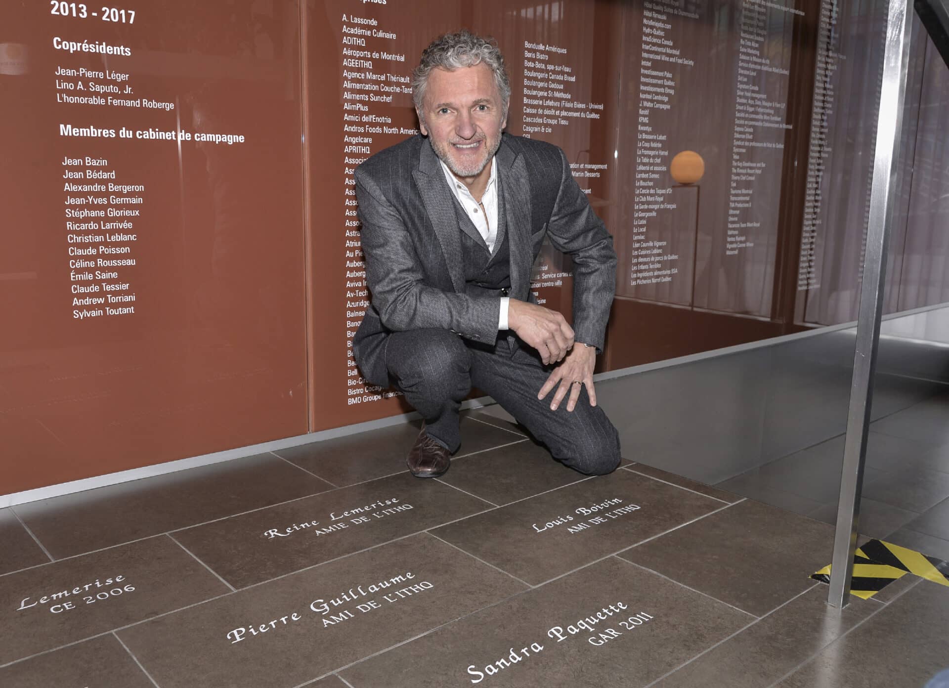 The new engraved tile stones are unveiled at an annual cocktail party to which all members of the Club des bâtisseurs, old and new, are invited.