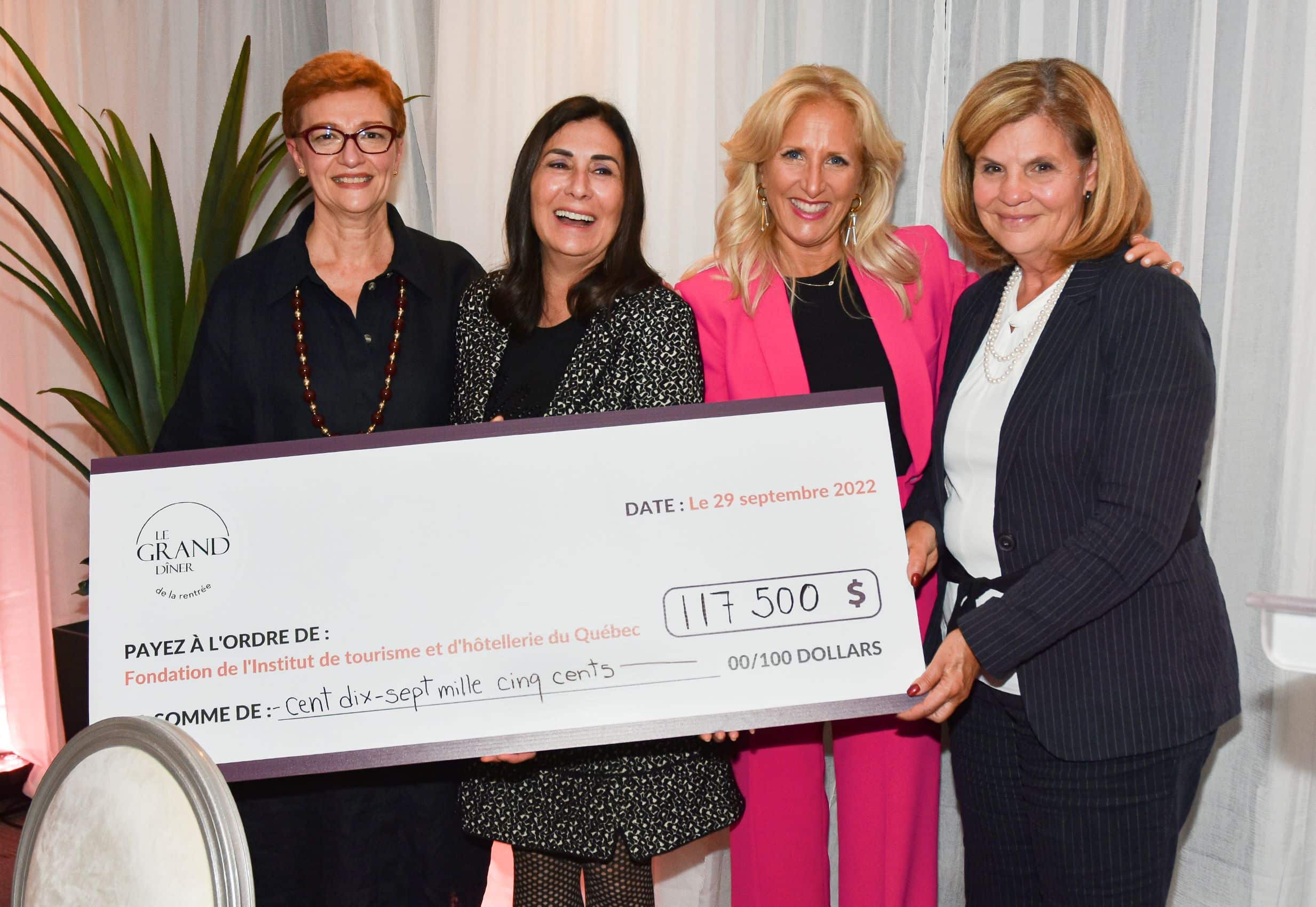 Montréal, le 03 octobre 2022 — La Fondation de l’Institut de tourisme et d’hôtellerie du Québec (ITHQ) a tenu la 17e édition du Grand Dîner de la rentrée présentée par Ivanhoé Cambridge le jeudi 29 septembre 2022. Avec l’objectif de soutenir les projets prioritaires de l’ITHQ, cette soirée-bénéfice a permis de récolter la somme de 117 500 $. Une partie de ce montant profitera plus particulièrement au Fonds de soutien à l’entrepreneuriat qui finance notamment le projet Passion Entrepreneur, un service d’accompagnement personnalisé pour les diplômés de l’ITHQ désirant reprendre, lancer, développer ou vendre une entreprise dans l’un de ses secteurs d’expertise. Ce service est offert par le Bureau des diplômés de l’ITHQ.