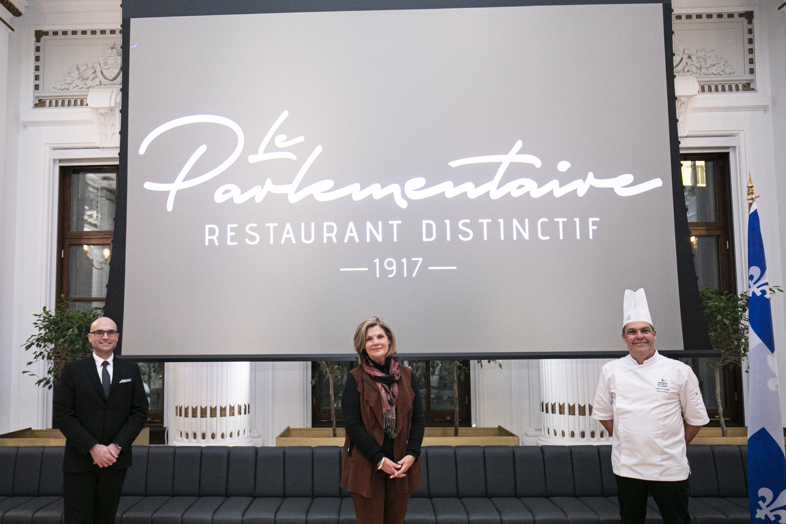 Québec, 3 novembre 2021 – Le président de l’Assemblée nationale, M. François Paradis, a procédé aujourd’hui à l’inauguration officielle du restaurant Le Parlementaire. Situé au sein même de l’hôtel du Parlement, le restaurant était fermé depuis deux ans, dans un premier temps pour y réaliser des travaux de rénovation majeurs, et ensuite, en raison du contexte sanitaire actuel. La directrice générale de l’Institut de tourisme et d’hôtellerie du Québec (ITHQ), l’honorable Liza Frulla, C.P., C.M., O.Q., participait également à cette cérémonie puisque les deux institutions collaborent, depuis plusieurs années, aux services de restauration de l’Assemblée nationale.