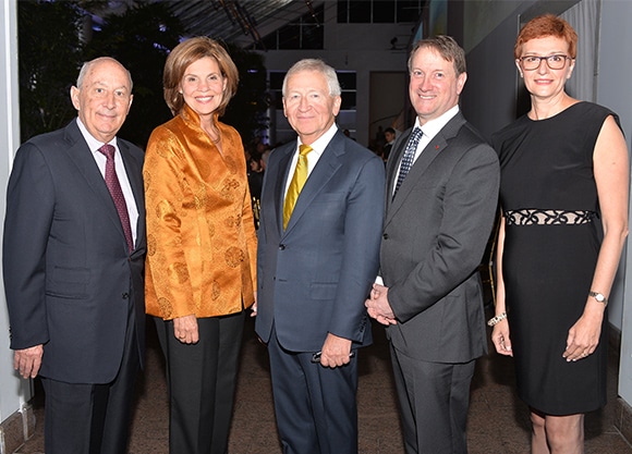 Montréal, le 6 octobre 2015 – La Fondation de l’Institut de tourisme et d’hôtellerie du Québec a rendu hommage, le 5 octobre dernier, à Jean-Pierre Léger, président du conseil et chef de la direction du Groupe Saint-Hubert, qui s’est impliqué auprès de plusieurs associations caritatives et d’organismes philanthropiques et, d’une façon toute particulière, de l’ITHQ et de la Fondation de l’ITHQ. Quelque 220 convives ont assisté à la soirée-bénéfice qui lui était consacrée dans la verrière du Musée des beaux-arts de Montréal. Placé sous la présidence d’honneur de M. Louis O. Vachon, président et chef de la direction de la Banque Nationale du Canada, cet événement a permis d’amasser la somme de 275 000 $ qui sera versée à la Fondation de l’ITHQ.