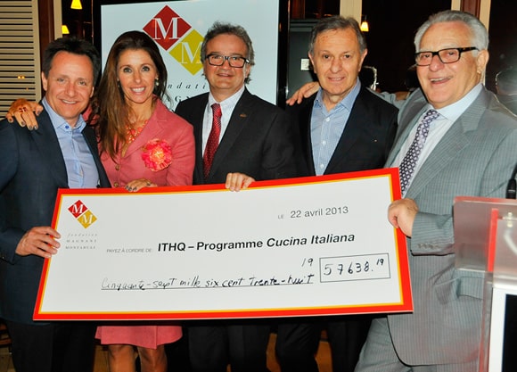 Montréal, le 25 avril 2013 – Chaque année, les finissants du programme Cucina Italiana, de l’Institut de tourisme et d’hôtellerie du Québec (ITHQ) s’envolent en Italie pour deux semaines de cours intensifs à La Scuola Internazionale di Cucina Italiana Alma, suivies d’un stage de trois mois dans de très bons restaurants. Ces séjours outre-mer sont rendus possibles grâce à la Fondation Magnani-Montaruli. Pour financer cette activité, la Fondation organise un banquet annuel, qui a permis cette année de recueillir pas moins de 57 638 $.