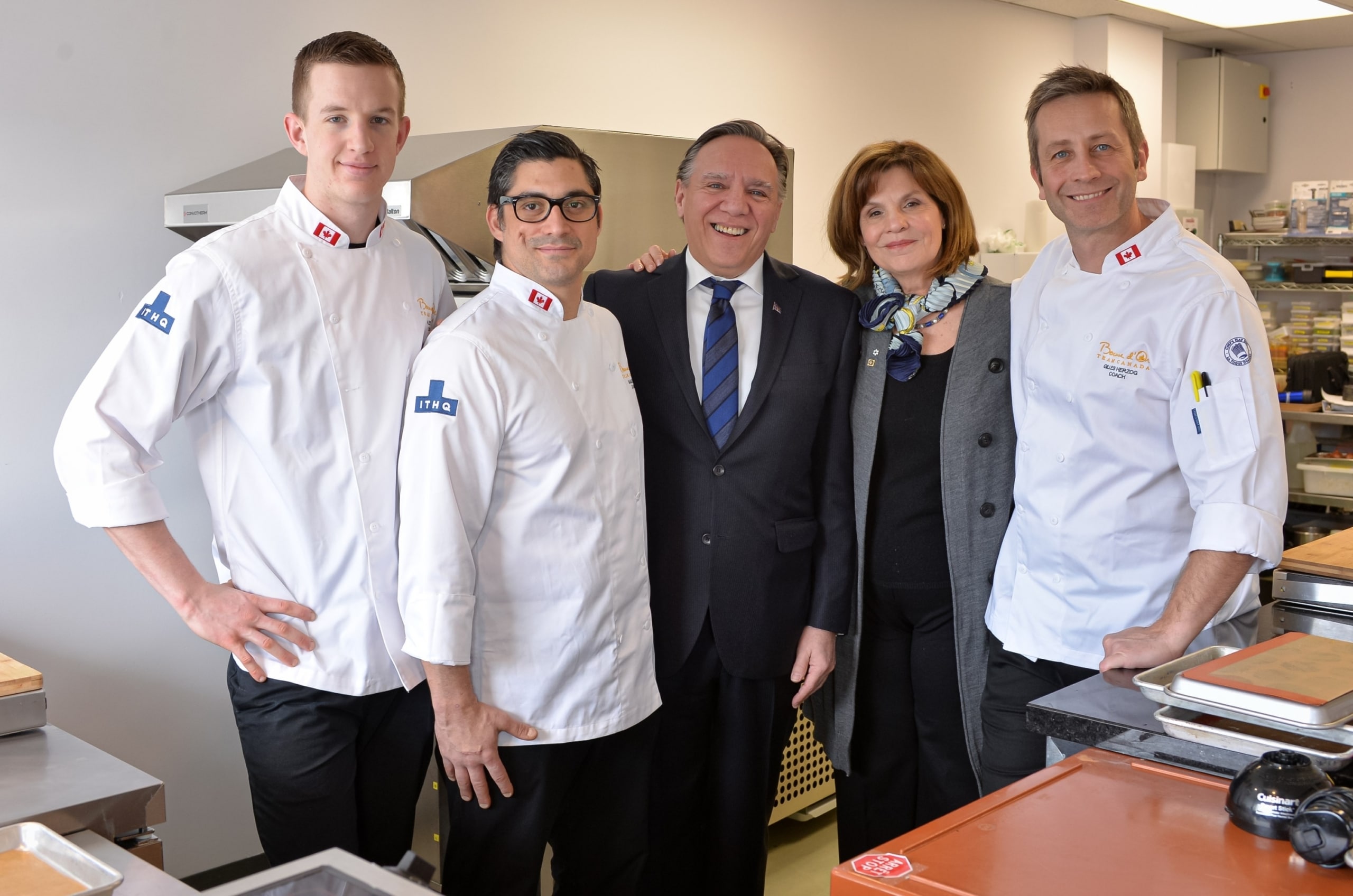 Montréal, le 27 février 2020 – De passage à l’Institut de tourisme et d’hôtellerie du Québec (ITHQ), le premier ministre du Québec, François Legault, a rendu visite mardi à l’équipe canadienne du Bocuse d’Or, qui s’entraine pour le concours culinaire le plus prestigieux au monde. Il a ainsi pu faire la connaissance de Samuel Sirois, chef et professeur à l’ITHQ, candidat canadien qui concourra avec son équipe à la compétition considérée comme les Jeux olympiques de la gastronomie. Monsieur Legault a ainsi pu découvrir le tout nouveau Centre national d’entraînement Bocuse d’Or Canada, hébergé par l’ITHQ, une cuisine identique à celle dans laquelle devra évoluer l’Équipe Canada lors des épreuves à venir.